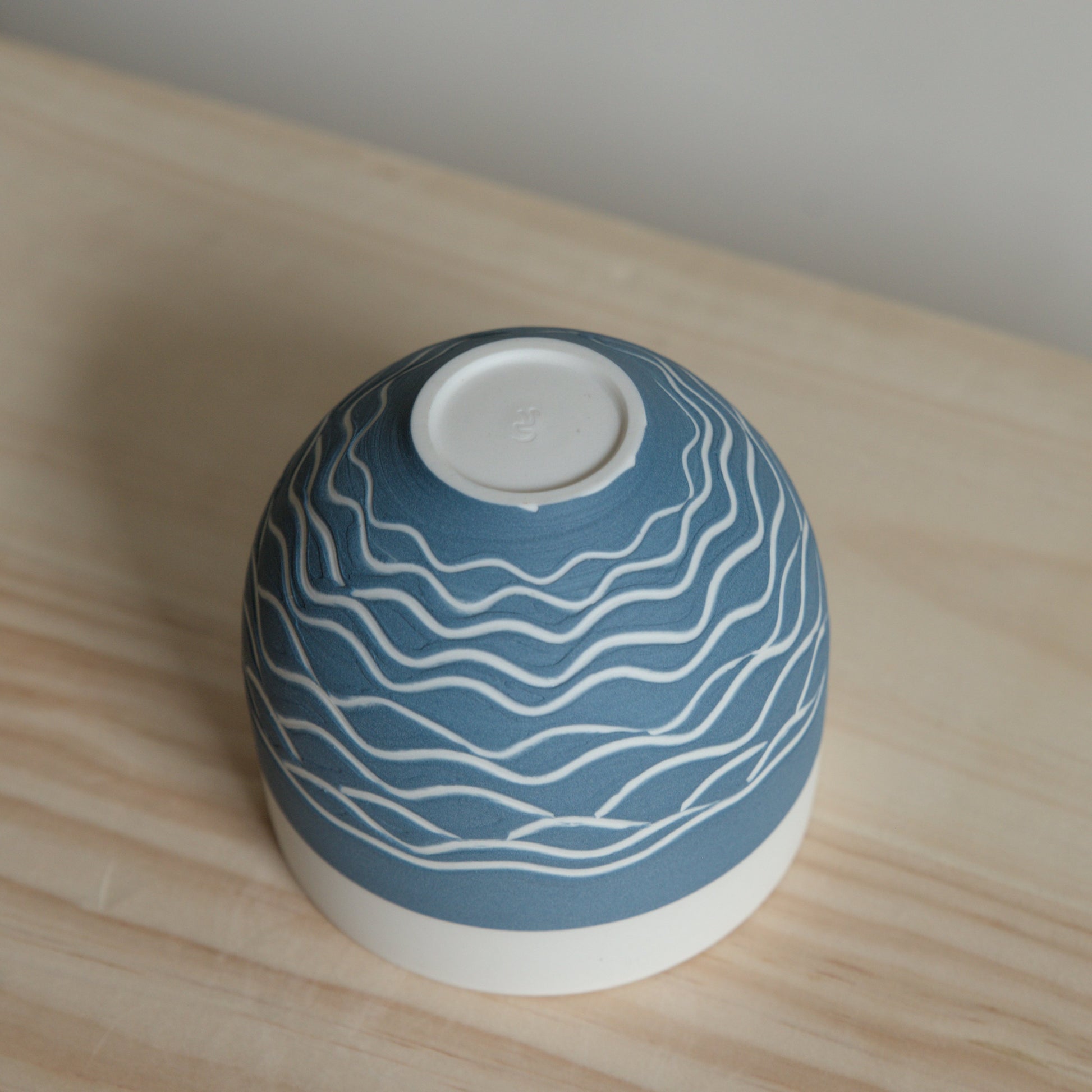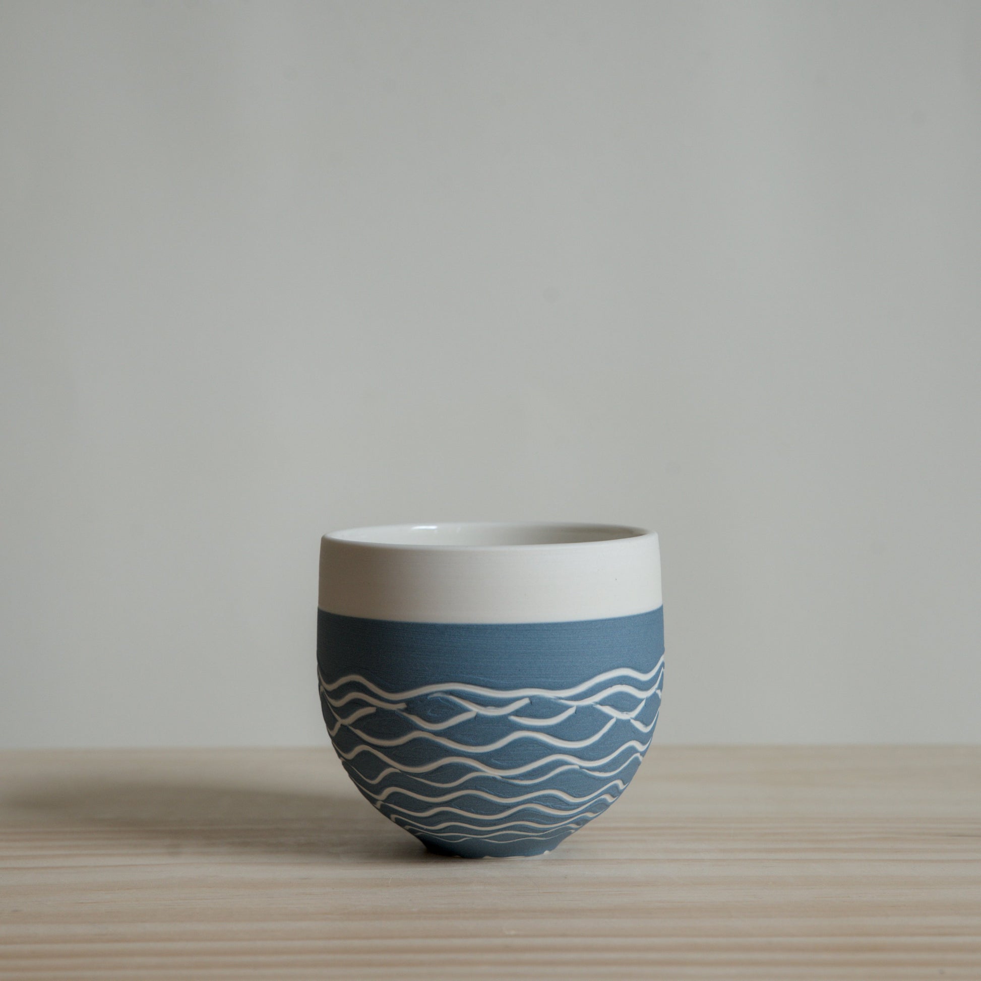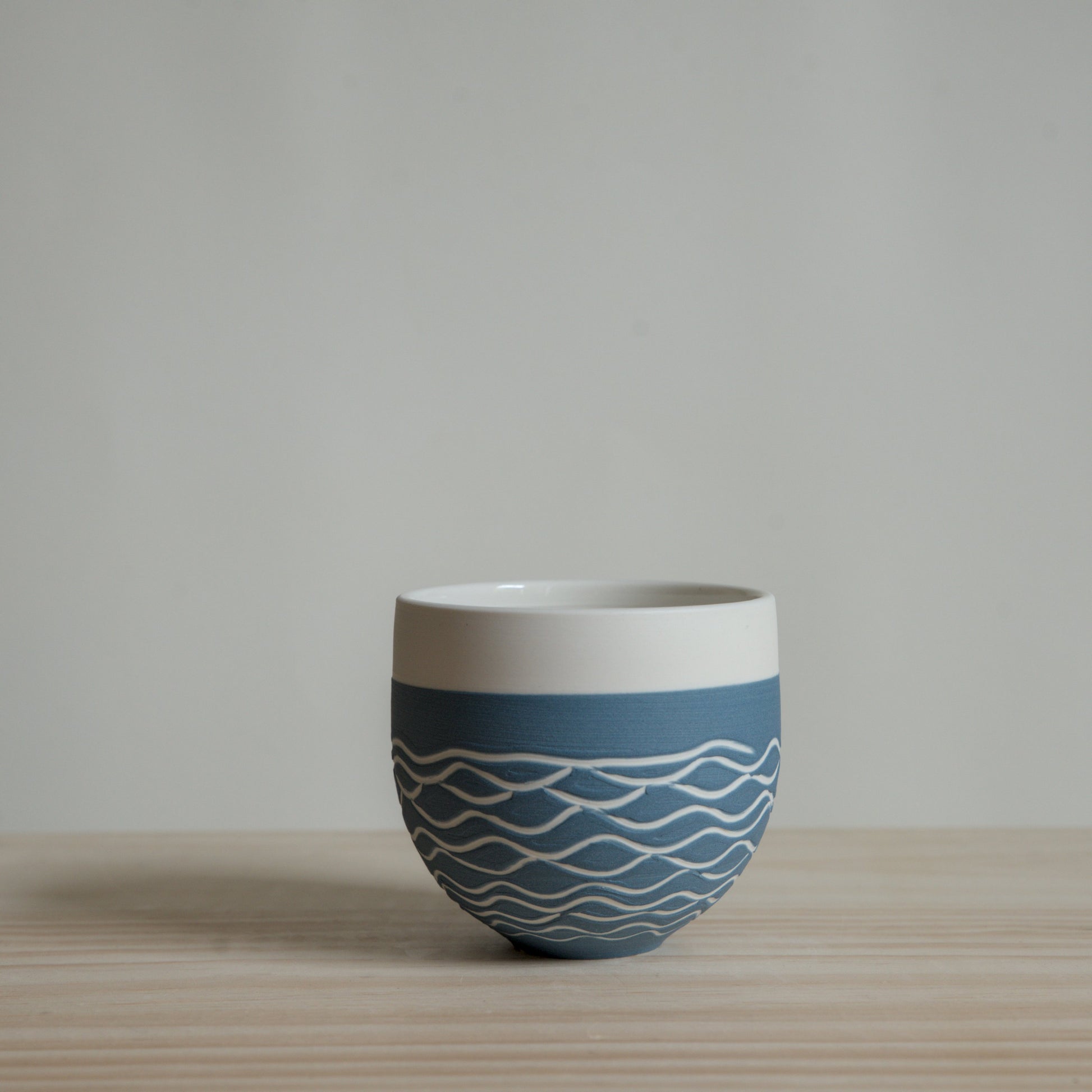 Each cup is wheel-thrown, with a pattern that forms naturally from the movement of the wheel, my hand, and the carving tool. The unglazed surface feels soft and tactile in your hand.