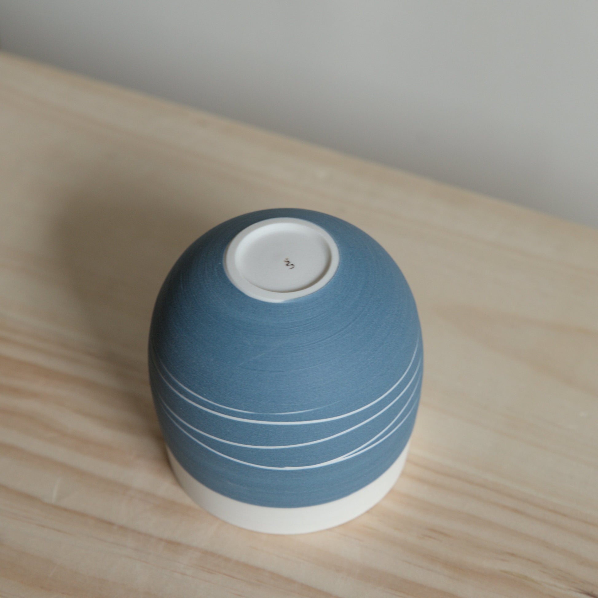 Each cup is wheel-thrown, with a pattern that forms naturally from the movement of the wheel, my hand, and the carving tool. The unglazed surface feels soft and tactile in your hand.