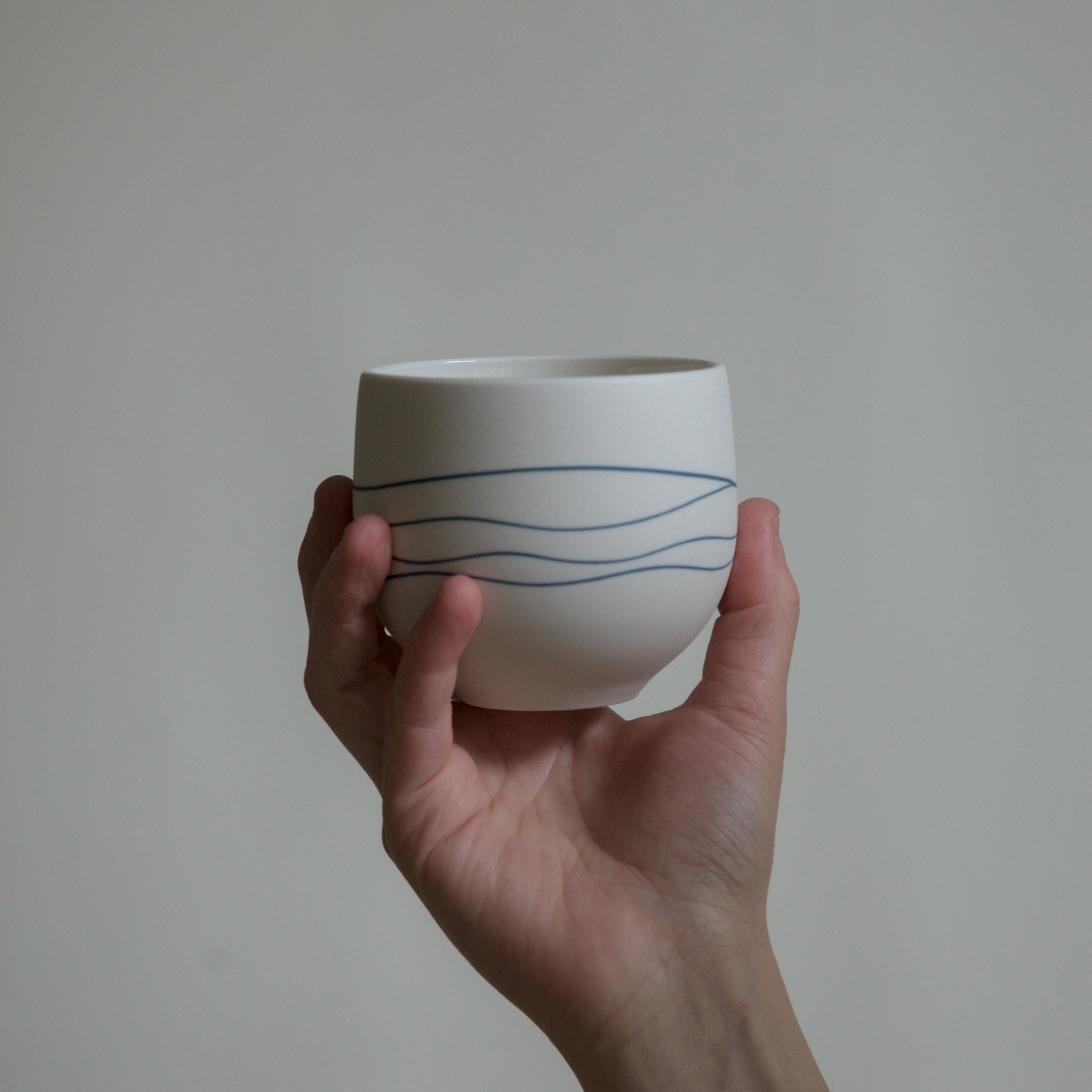 Each cup is wheel-thrown, with a pattern that forms naturally from the movement of the wheel, my hand, and the carving tool. The unglazed surface feels soft and tactile in your hand.