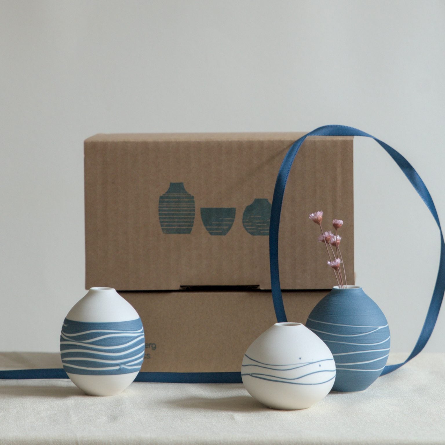 This miniatures set includes three handcrafted mini porcelain vases, each glazed with a transparent glaze on the inside while leaving the exterior unglazed for a natural, soft texture.
