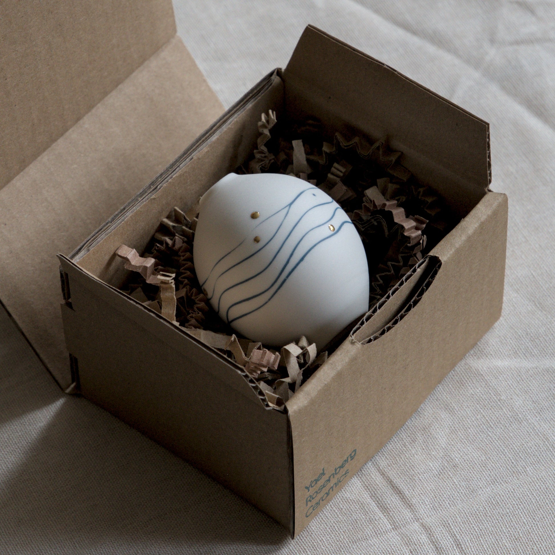 This delicate porcelain vase captures the essence of simplicity. Each piece is wheel-thrown, showcasing a unique blue pattern that emerges from the the subtle dialogue between the spinning wheel and my hand. Its unglazed exterior invites touch, offering a tactile connection to the raw, natural material.